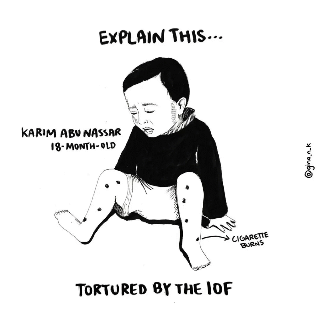 Sementara itu di Gaza, tentara Israel dilaporkan menyiksa seorang bayi berusia satu tahun—membakar salah satu kakinya dengan rokok dan memasukkan paku ke dalam kakinya—untuk menekan ayahnya agar membuat pengakuan dalam interogasi yang penuh penyiksaan.