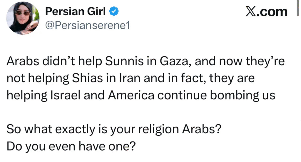 “Entitas-entitas Teluk ini sedang menuai apa yang mereka tanam dengan tangan mereka sendiri. Mereka lahir sebagai tambahan yang nyaris tak berarti dalam sejarah, di bawah bayang-bayang perlindungan Inggris. Dan setelah Inggris pergi, Washington mewarisi mereka secara tidak langsung. Hal ini mulai menguras kekayaan dan kapasitas mereka, menjadikan negara-negara ini tidak lebih dari bahan bakar bagi perang-perang tanpa akhir yang tidak membakar siapa pun selain rakyat kita sendiri.
